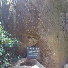 宮島の裏山の弥山の頂上付近にある岩です。弥山の七不思議の一つです。へとへとになってようやく頂上の展望台に辿り着き、一休みした後に下りの道を歩いて行くと現れます。岩に開いた穴に水が溜まっていますが、この水の水位が、海の満ち引きと連動するというものです。