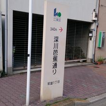 芭蕉庵跡や芭蕉記念館などがあるエリアの、南北に通っている万年橋通りと清澄通りを結んでいる東西のごく標準的な江東区の区道です。森下駅から芭蕉庵跡に行く場合は清澄通りからこちらの通りに入って、西側に万年橋通りまで行くことになります。あえてこの通りの特徴と言えば、この界隈では珍しく通りの両側に街路樹が植わっており、それがソメイヨシノなので、春になれば桜のトンネルになることです。そうなると芭蕉関連の史跡に行くのも非常に盛り上がると思います。