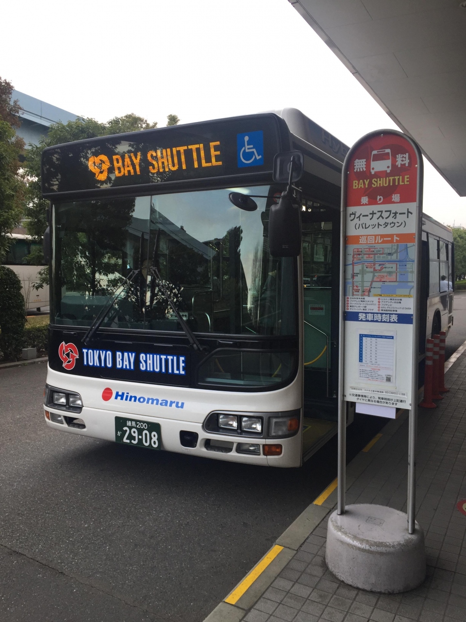 11時から19時まで1時間に3本の割合で運航しています。お台場はそれぞれに施設が隣接しているので、歩けないこともありませんが、疲れたときにはこのシャトルに乗って、しばし観光気分を味わいます。ぐるっと廻るので、場合によっては歩いたほうが早くついたり、のんびり走るので、時としてイライラすることもありますが、無料ということもあって便利この上ない乗り物です。