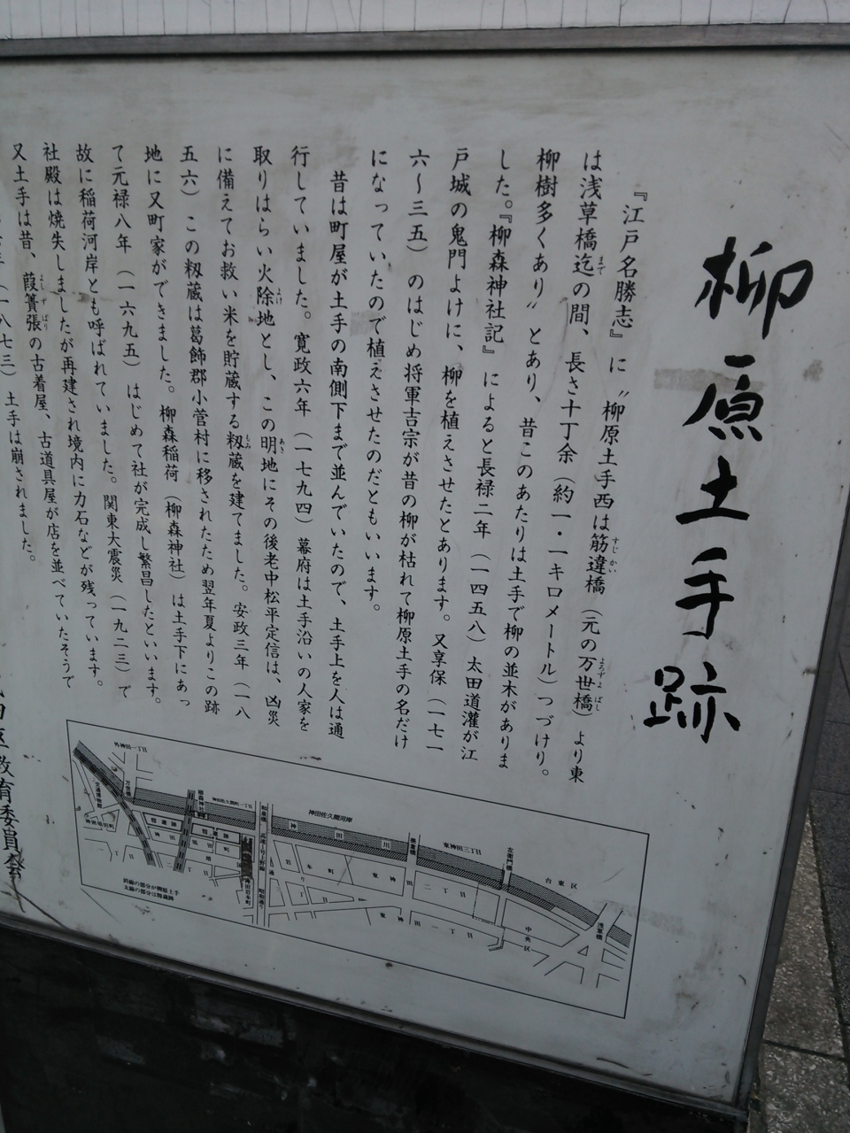 歴史好きにはおもしろいです。秋葉原駅の手前に神田川があり、そこに『和泉橋』という橋が架かっています。上流に向かって左手(西側)に浅草御門から筋違御門まで築かれた柳原土手があったそうです。昔は土手を歩けたようですが、今は当然できません。