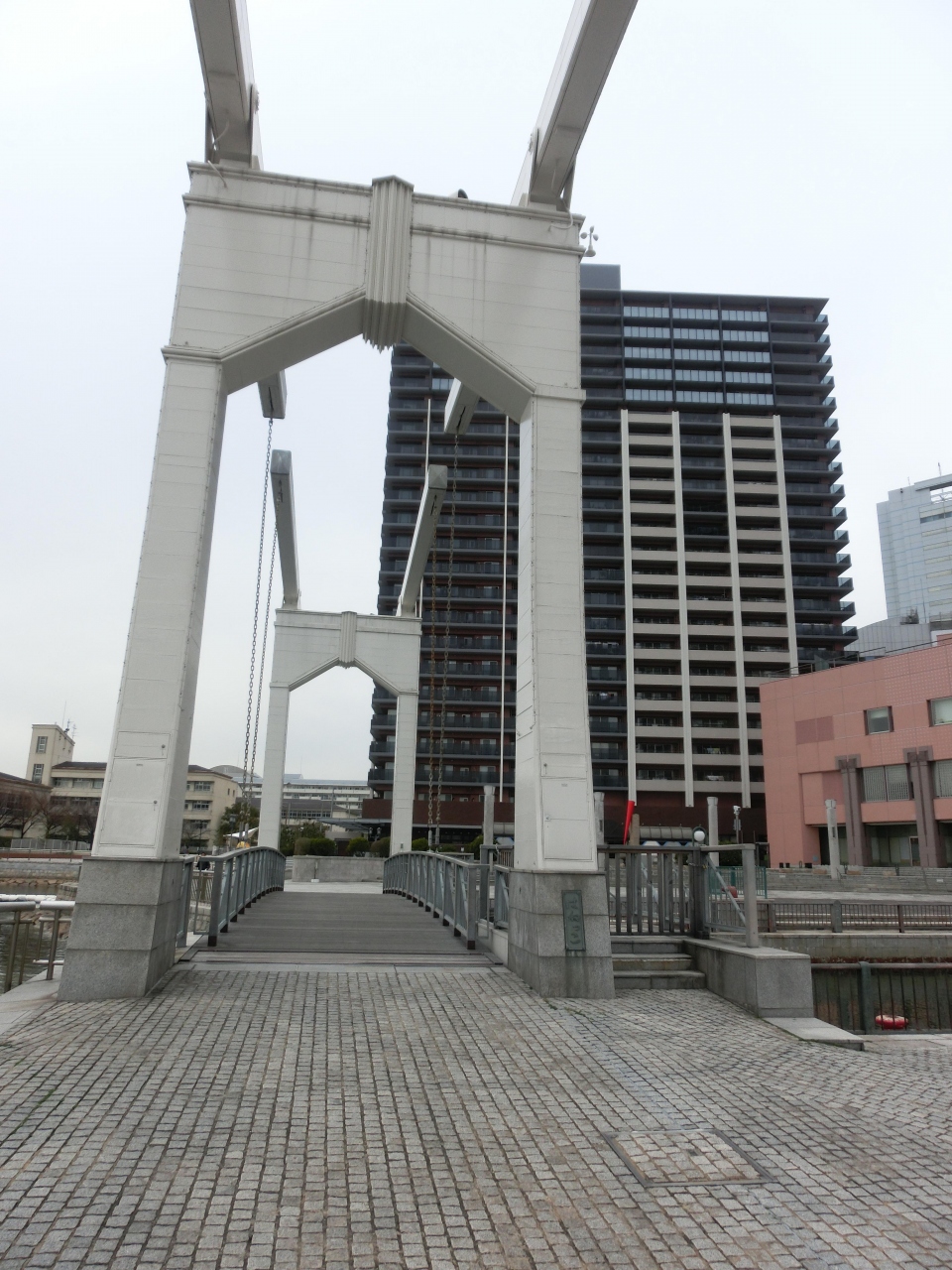 運河網が四通八達しているオランダやフランスなどヨーロッパでは多く見られる橋の形だが、歩道橋としては日本で初めてだそうだ。