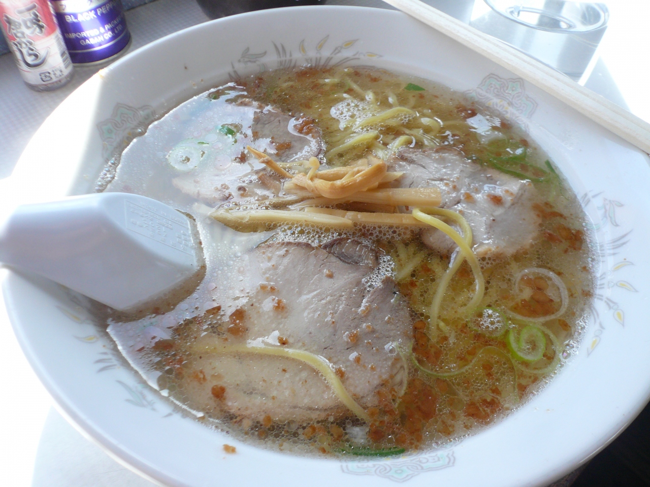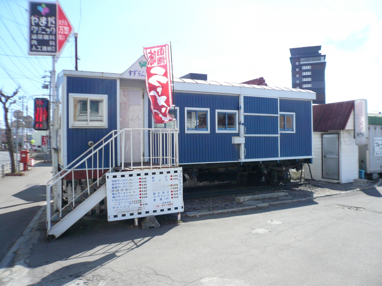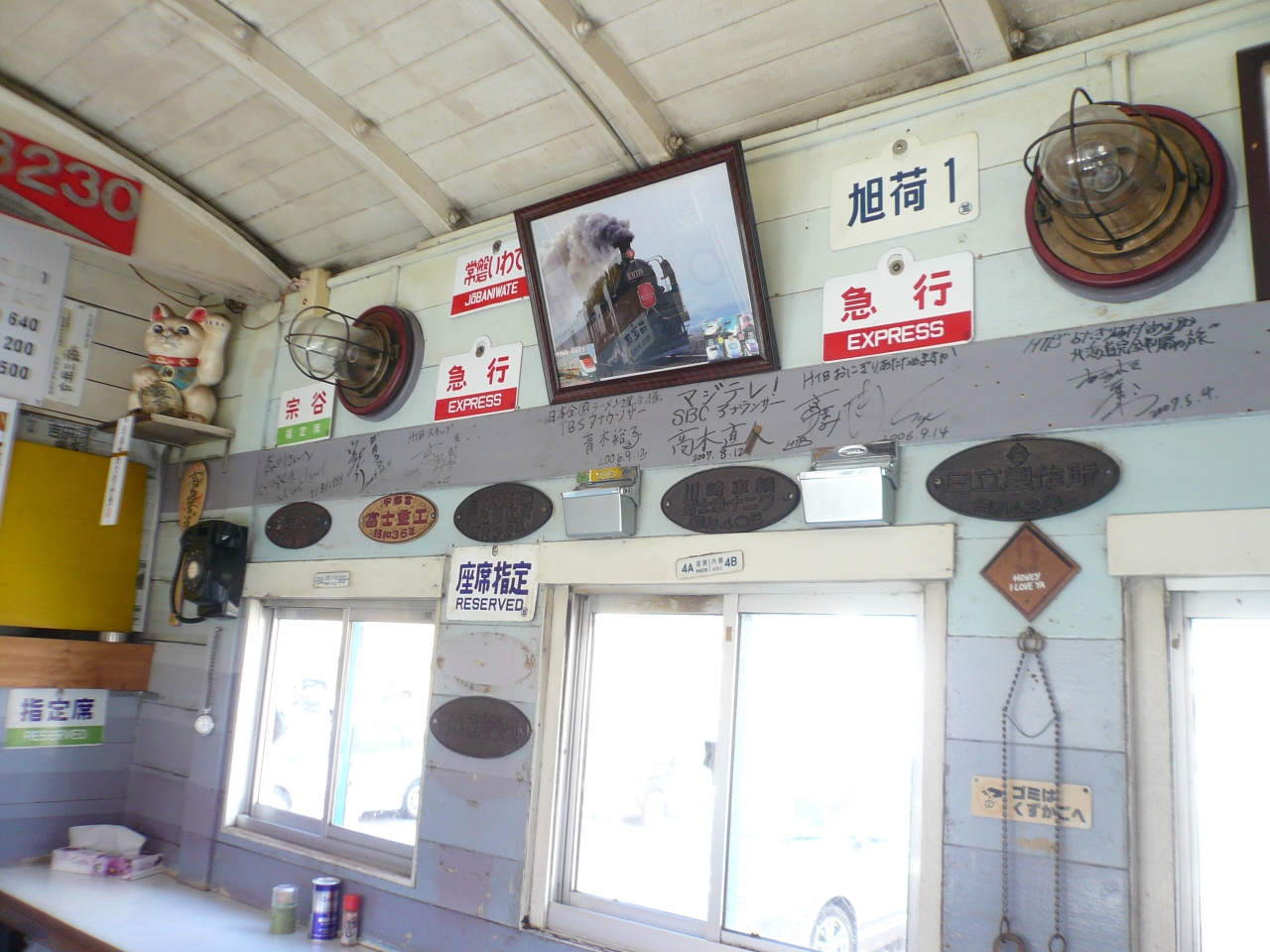 地元のお客さんと観光客が半分ずつな感じです。お昼時、絶えずお客さんが入ってきます。外観も鉄道車両ですが、内部は行き先板とか銘版など鉄道部品コレクションでいっぱいなのも驚きでした。ラーメンは塩と味噌が選べます。私はほとんど全員が頼んでいた塩にしました。スープがあっさりの美味でした。麺はストレート細麺ですごく短いもので、あまり好みではなかったです。