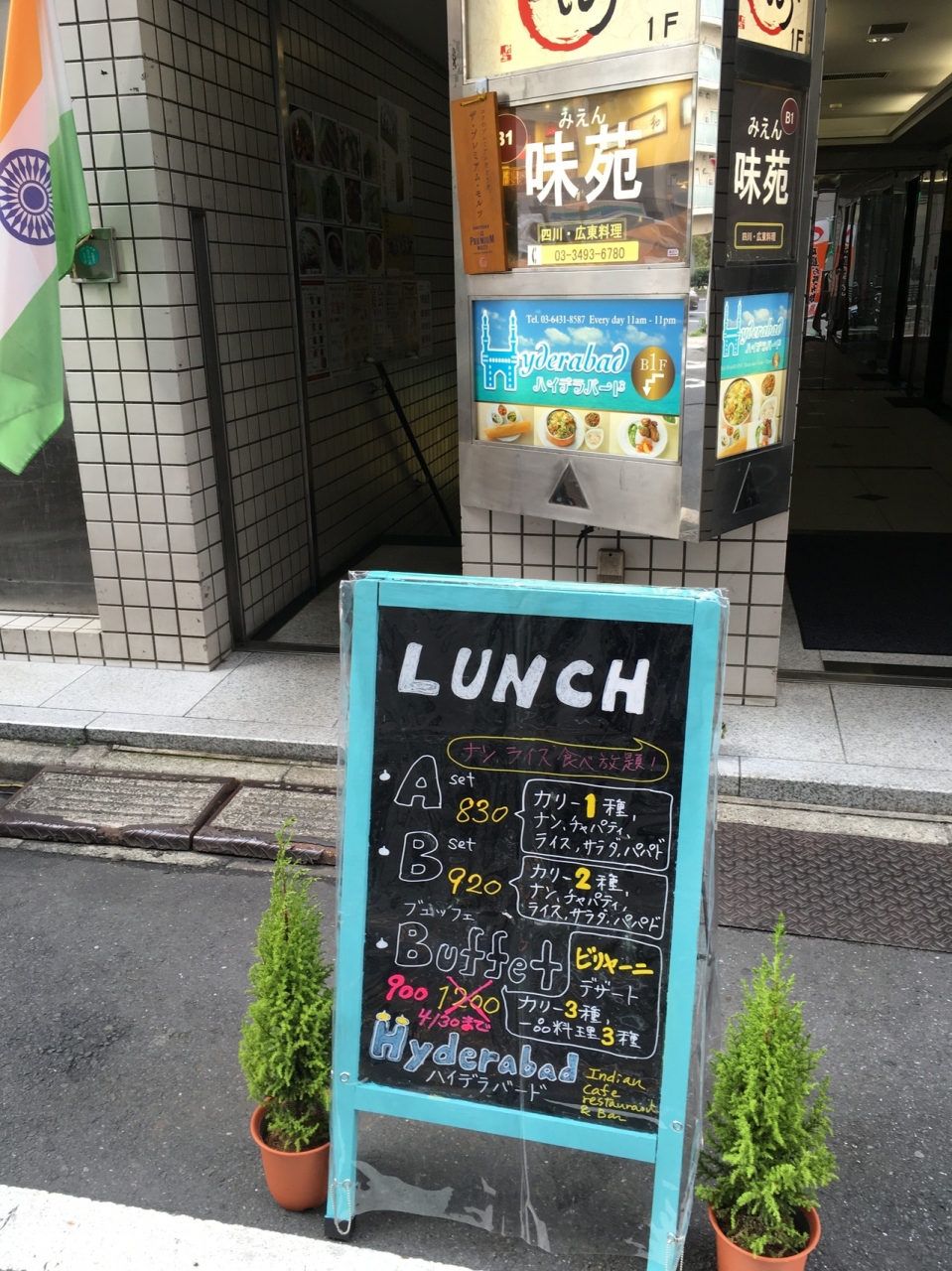 五反田西口の雑居ビル地下にあるインド料理店。ランチは3種でビュッフェならカレー3種・ビリヤニ・料理3種、デザートで1200円。キャンペーンで1200円→900円とお得でした。