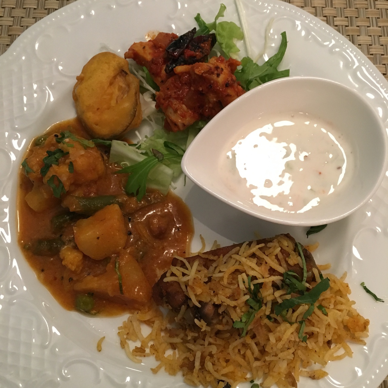 ビュッフェ料理の蓋が緩やかにしまる方式だったのが便利。なぜかナポリタンがありましたが脇のチキン料理がスパイシーで美味しかったです。