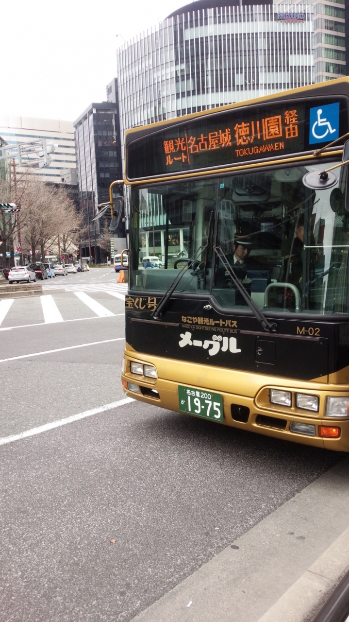 名古屋駅から主要観光スポットである名古屋城やテレビ塔など各方面を巡る可愛らしい黄色の小型バスです