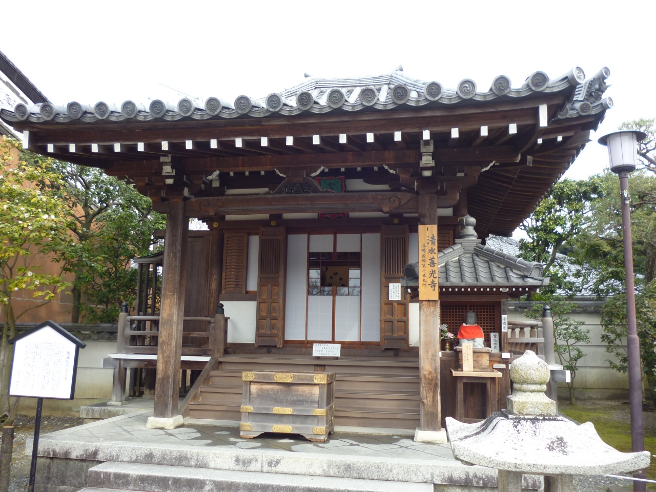 清水寺仁王門の手前左手にあります。ご本尊は,如意輪観音菩薩様です。お堂の右に「首振り地蔵さん」がいます。首が回るお地蔵さんで、首を思う人の方向に回して願うと、その願いがかなうそうです。恋愛成就のご利益があります。