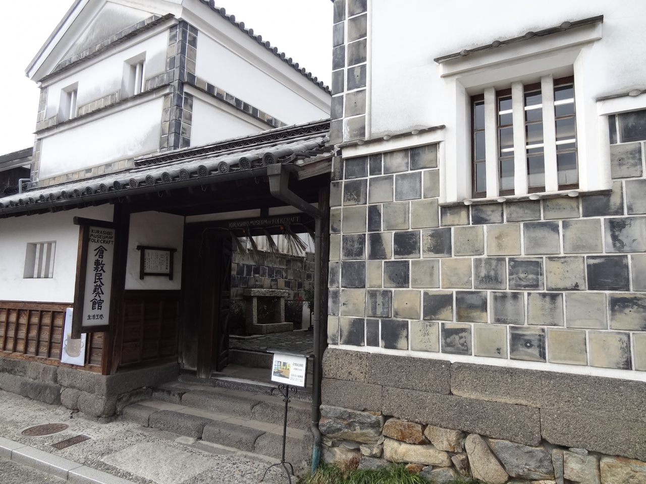 江戸時代の米倉を改装し作られたのが民芸館で、やはり大原家が資金を出したそうだ。一般庶民に役立つような作品が多く、焼き物やかご、ガラスなど多様な作品が展示してある。建物自体も、白壁に貼った瓦でできていてとても落ち着いた雰囲気。入館料がちょっと高い。