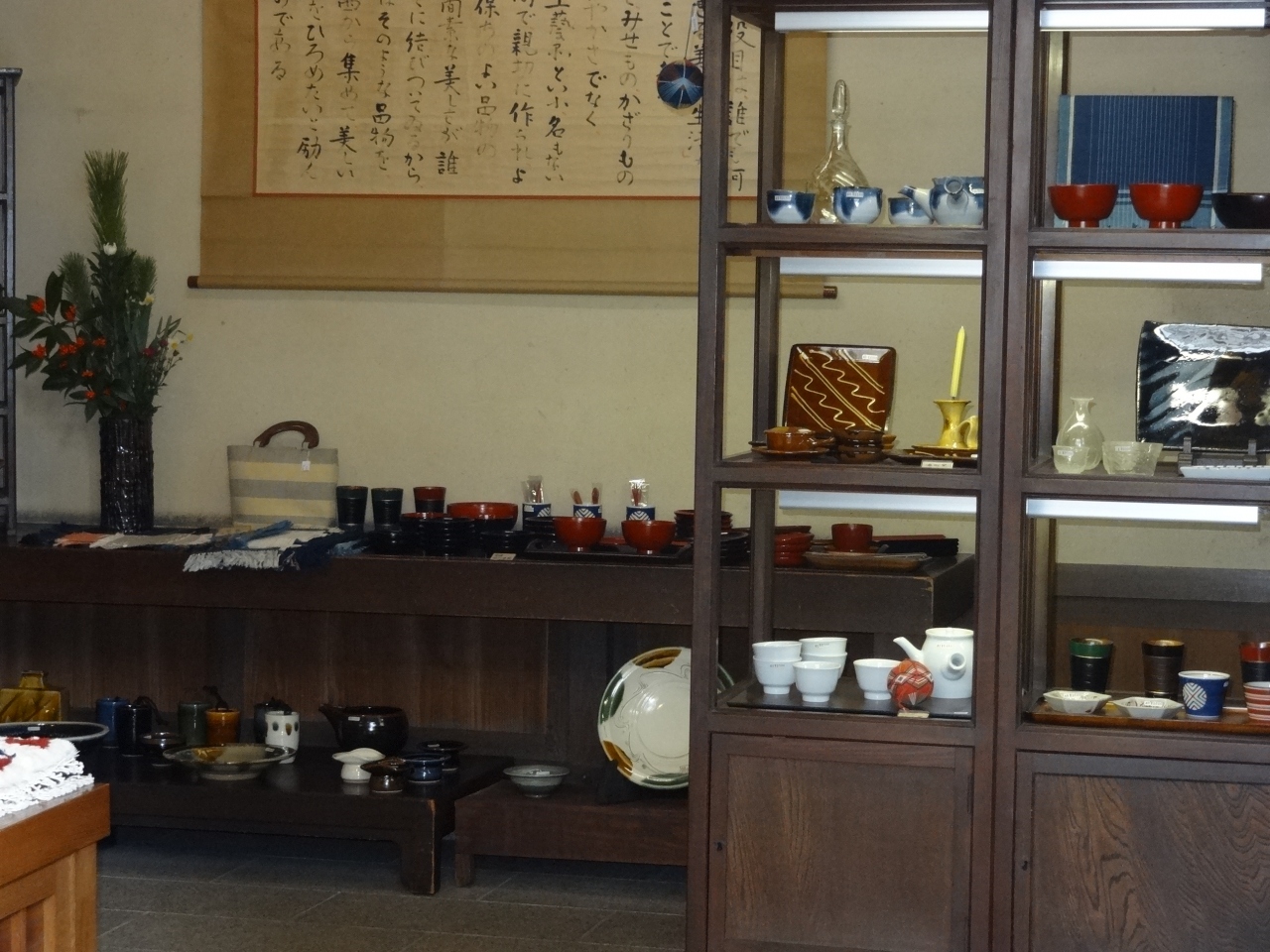 米倉を改装した立派な建物と民芸品