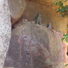 宮島の厳島神社の裏山の弥山に登りました。弥山の頂上付近には奇岩がたくさんあり、そのうちの一つです。この不動岩の先にはくぐり岩という有名な岩があります。ふたつの柱石が巨大な盤石を支えていて、ほこらのような形をしています。その祠の形をした場所に、不動明王の石像が安置されています。