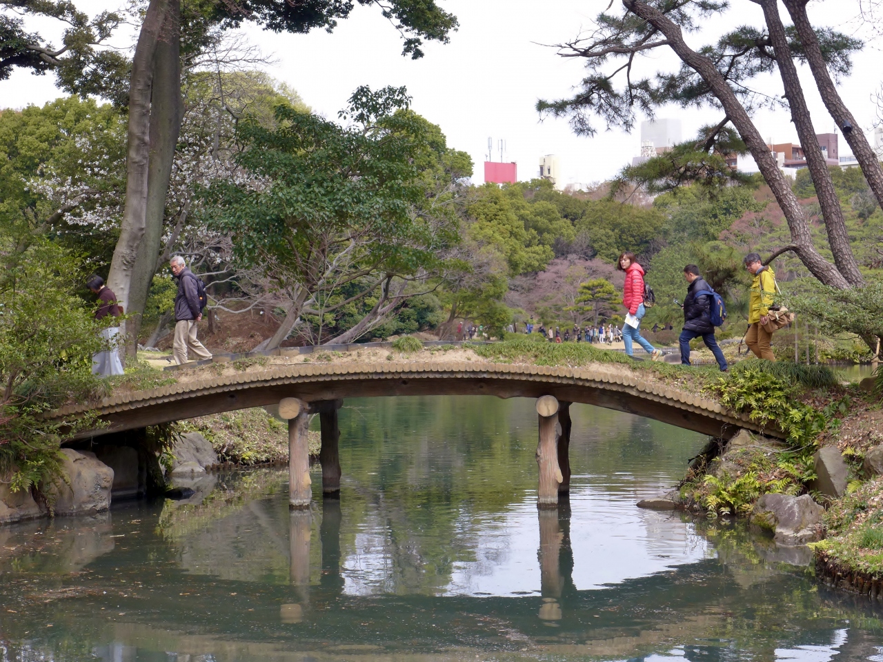 JR山手線の駒込駅の近くにある都立の庭園・六義園は、思ったよりも広く中央の大きな池を囲むように築山や滝、橋があり、のんびりと散策ができました。