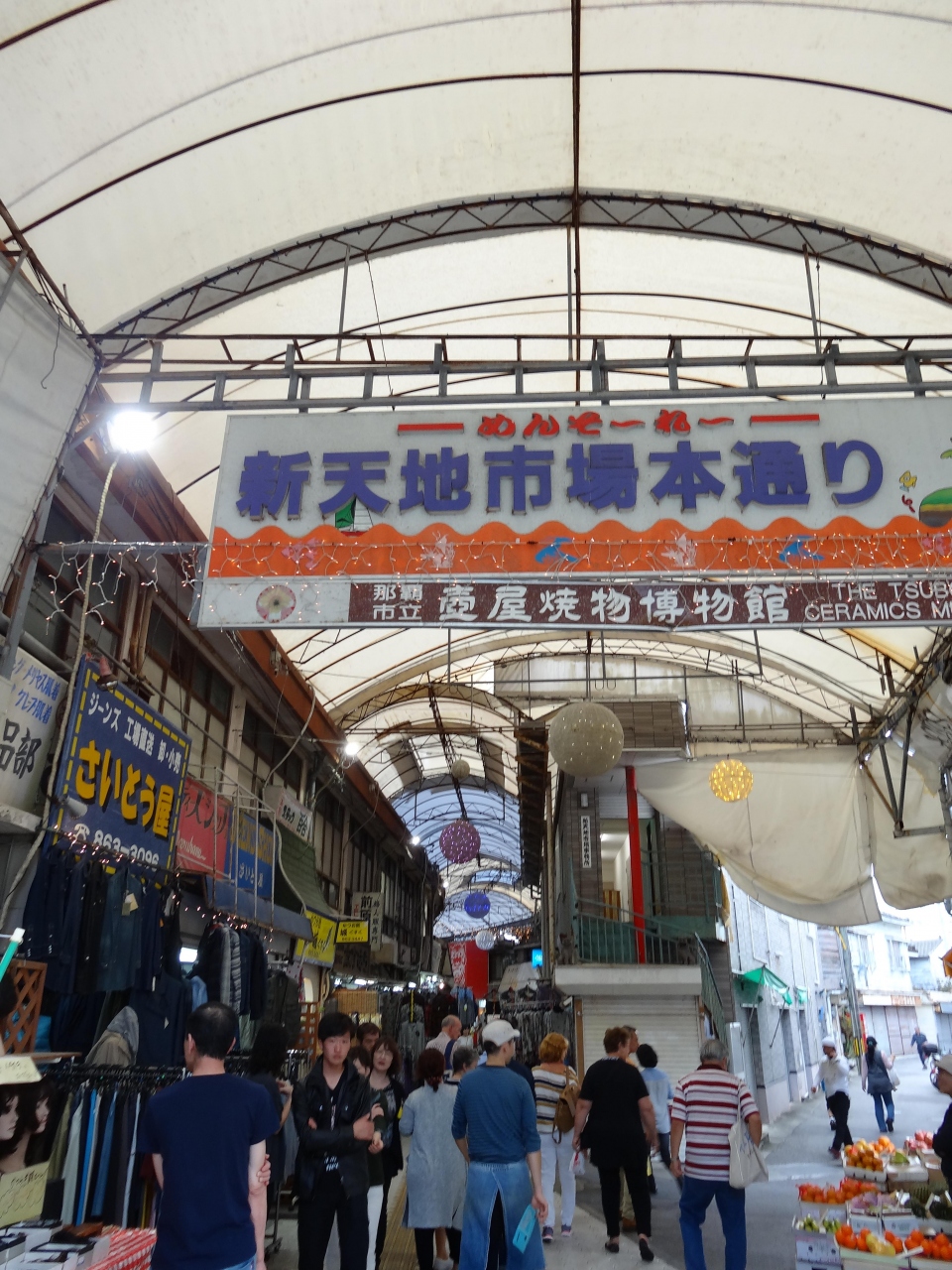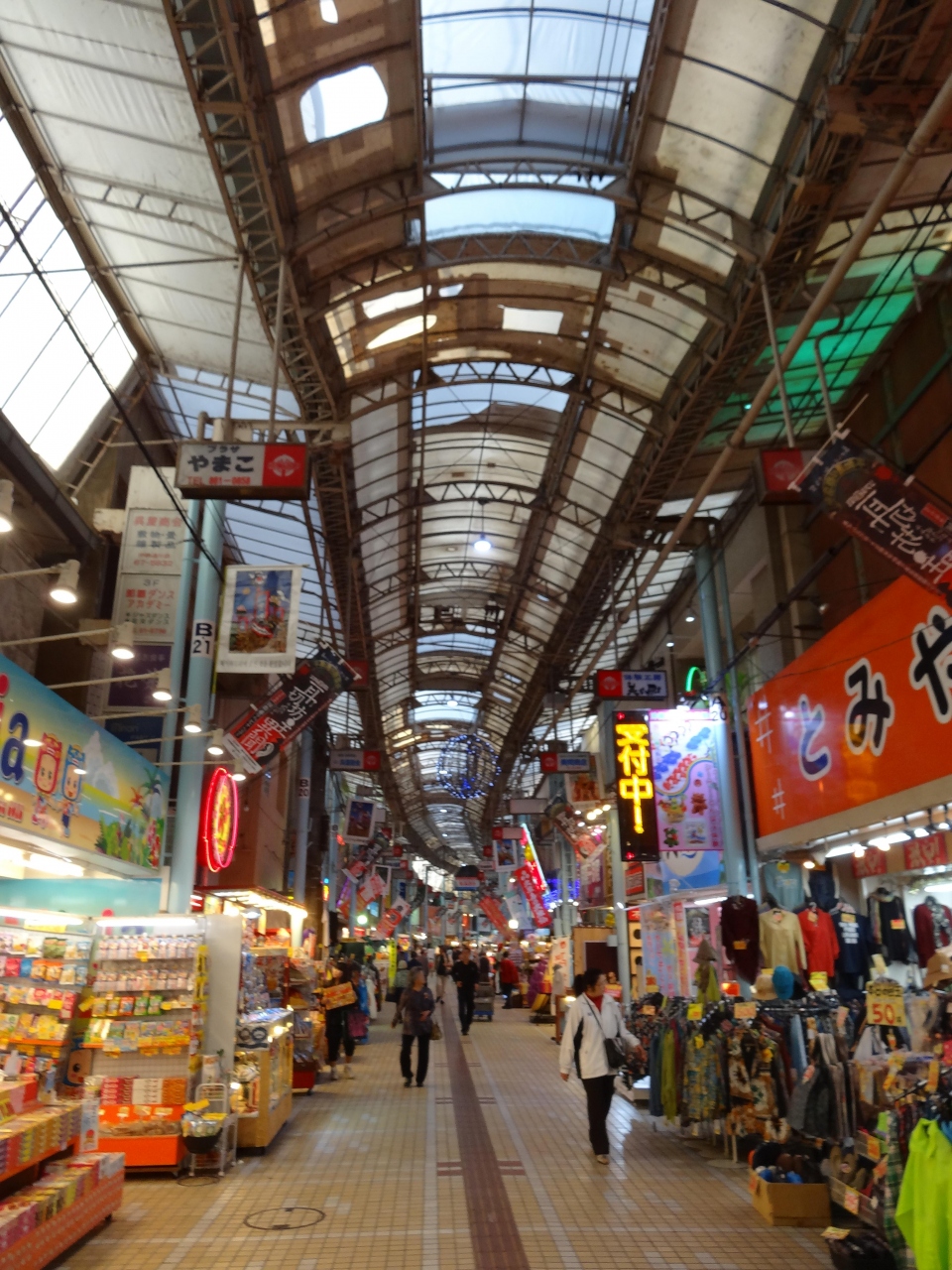 国際通りから市場本通りに入り進んでいくと、沖縄定番のお土産を売る店がたくさん並び、観光客でいっぱいでしたが、公設市場を越えたあたりからだんだん観光客は少なくなり、どちらかというと地元のお客が増えていく感じになりました。ご高齢の主婦層が増え、香辛料やお惣菜を売る店からだんだん衣類や靴を売る店へと変わっていき、壺屋焼物へと続きます。同じ商店街でも様々な姿が見れて、とても興味深かったです。