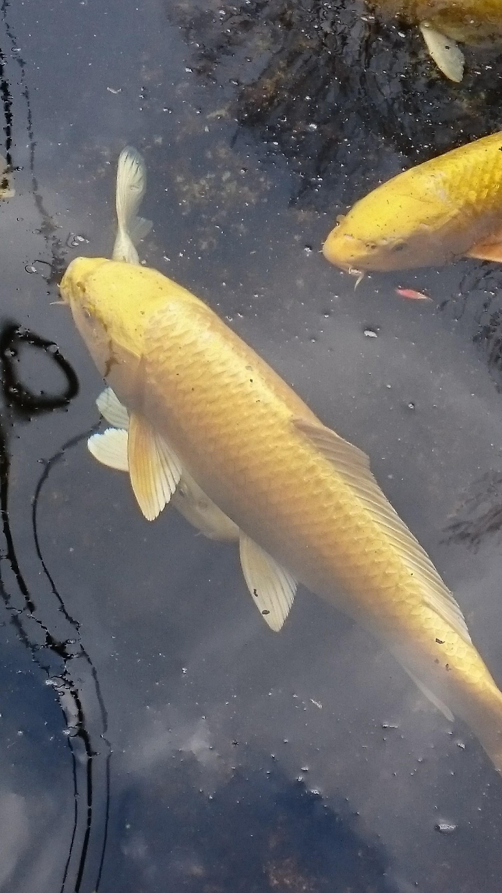 ロープウェイ乗り場前には黄金の鯉もたくさんいて
