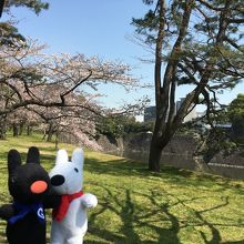 お堀をバックに桜が咲く...日本的な風景を楽しめます。