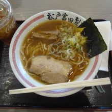 フードコート内にあるラーメン店です。つけ麵もひかれましたが、中華そばも美味しそうだったので、それにしてみました。煮干しを使った出汁が特徴的で、スープからもその香りが漂っていました。麺はやや太め。これはつけ麺サイズかもしれません。全般的には美味しかったですが、出汁が濃いというか、かなりちょっぱい印象でした。なので麺は食べれましたが、さすがにスープは飲めませんでした。