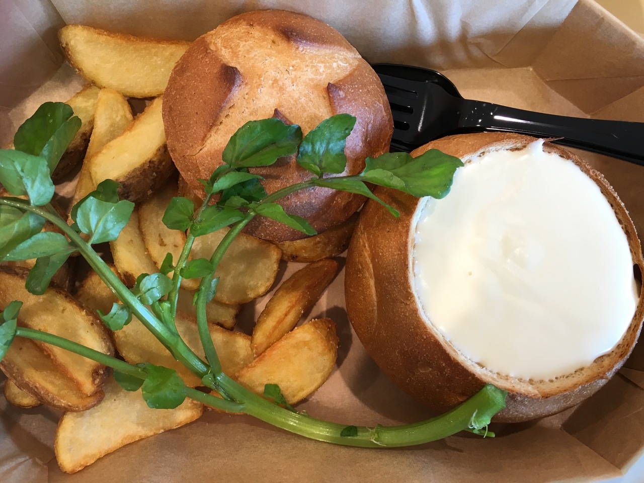 大きな丸いパンをくり抜き、アツアツのとろけるチーズがたっぷり入っていて、チーズ&パン好きにはたまりませんでした。