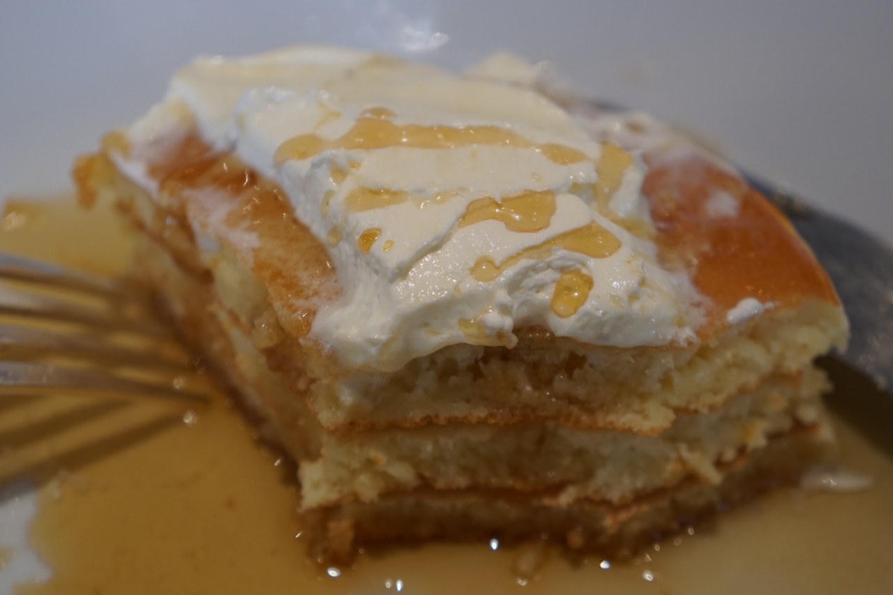パークサイドダイナーは、帝国ホテルの一階。これも一応名物なんだと思いますが、パンケーキをいただきました。きつね色に焼いたまん丸のパンケーキが皿に乗って出てきますと、何んともきれいですねえ。バターと蜜をかけて、もうたまりません。紅茶はお代わり自由だし、係の人もさすがに客への対応が丁寧この上ない。値段は高めですが、期待通り気持ちよい時間を過ごさせてもらいました。