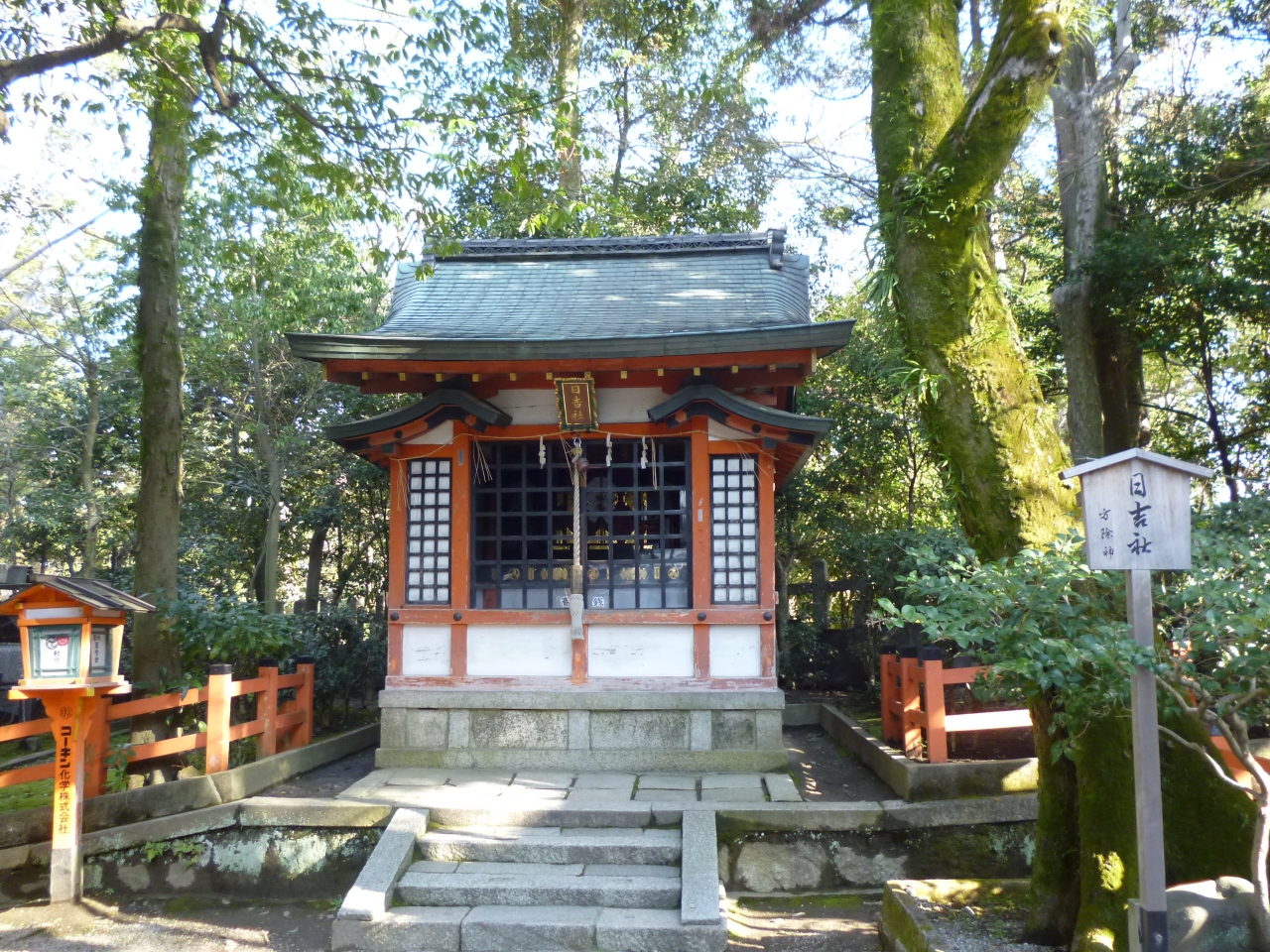 八坂神社にあります。大国主命の分魂をお祭りしています。京都の鬼門を守っている方位除けの神様として信仰を集めています。木々に囲まれて、静かにたたずむ、朱塗りの柱が美しいお社でした。ご本殿から左に進んで行くとあります。