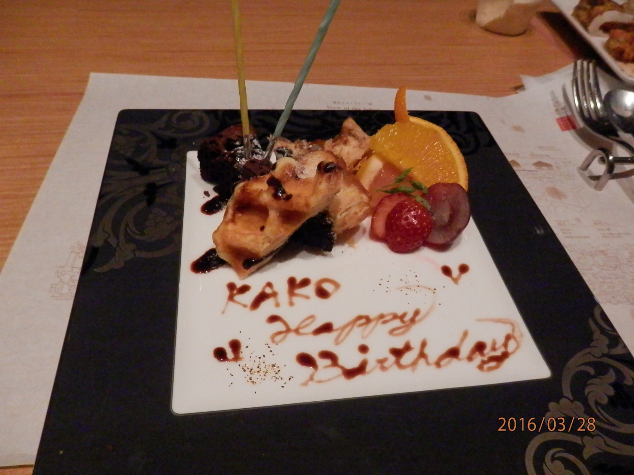 予約して早めに行ったものの結構並んでいました。席に案内され「!!!」なんと、スカイツリーが見渡せる席。到着した時、外は明るかったので夕暮れから夜にかけての風景・夜景は素敵でした。お料理も美味しくお替わり!美味しすぎてデザートまで行き着かなかったのが残念!そしてサプライズがやってきた。姪にはナイショでバースデープレートをお願いしておりました。コーラスもあり記念に残る日になりました。またどこかでサプライズしたい(笑)バースデープレートはネットで予約した時に備考欄に記入、無料で仕上げて文字も入れてくれます。サプライズには是非!おススメです。