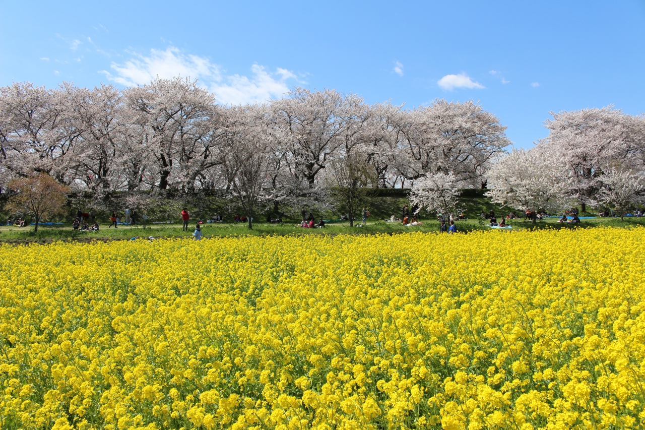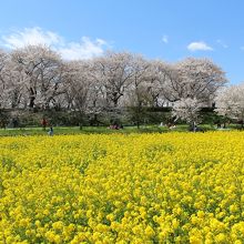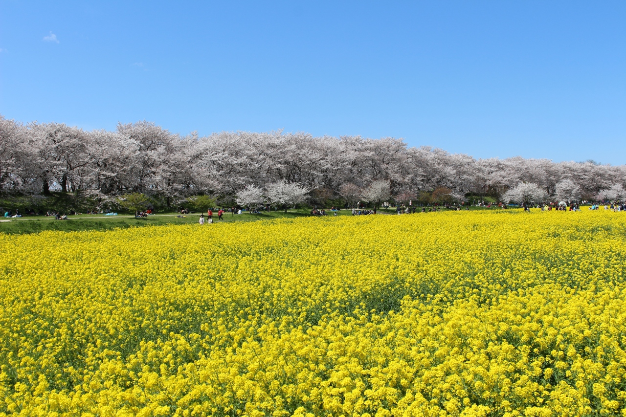 桜の名所として有名な幸手の権現堂桜堤ですが、一面に咲く菜の花が見事です。