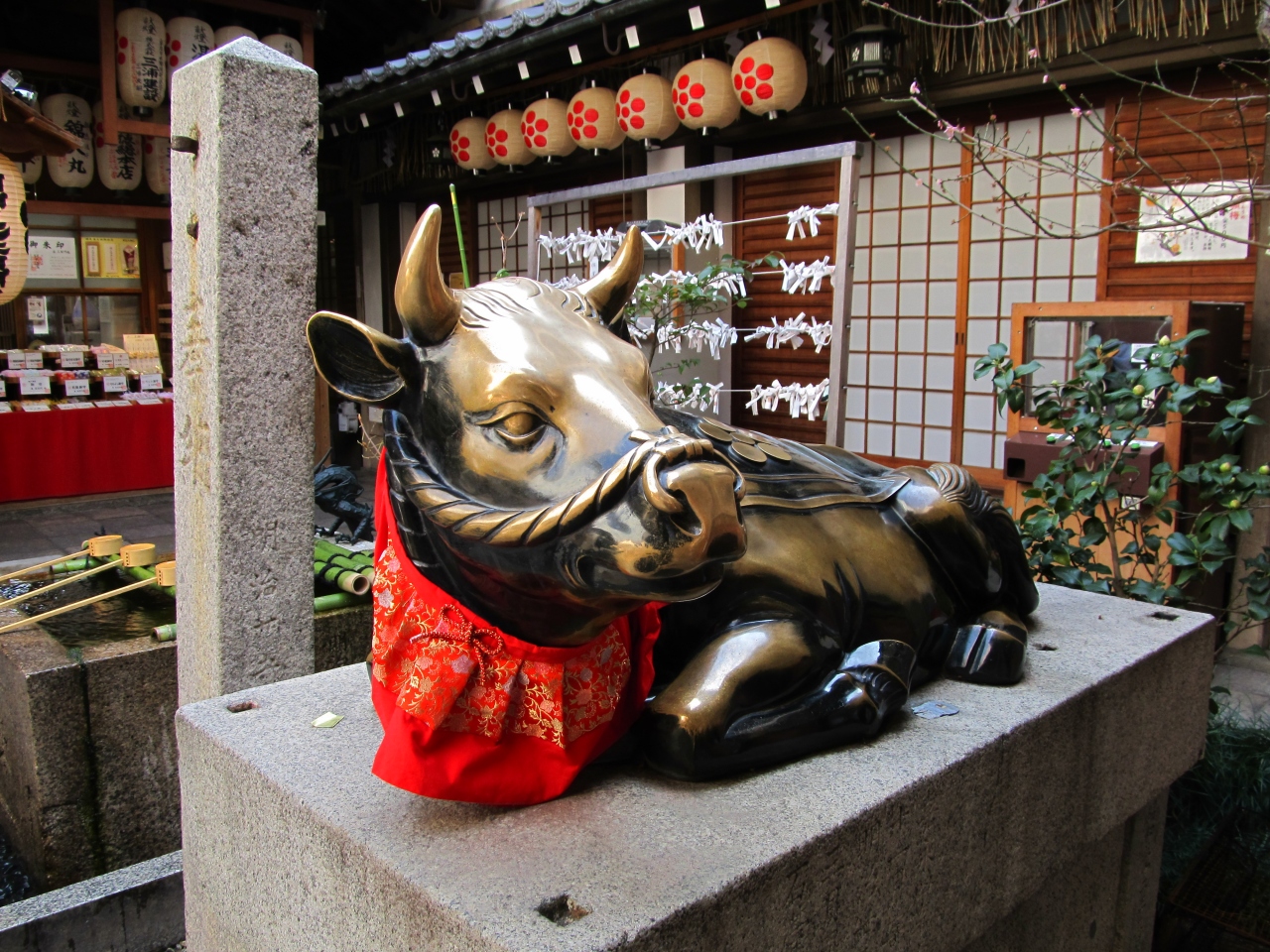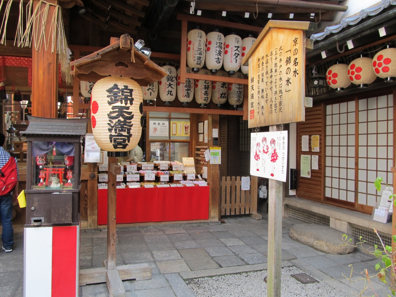 錦市場のどん詰まりにある。もう学業には関係ない歳だが、気になって立ち寄った。入試試験の前なのか若い人が多かった。
