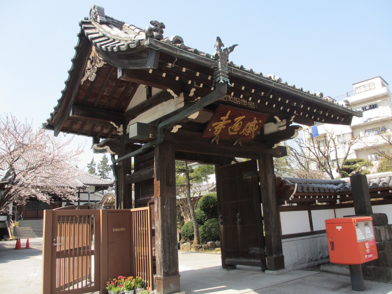 地下鉄早稲田駅から徒歩6分です。夏目坂通りにあります。山門脇に郵便ポストが設置されているのですぐわかります。日蓮宗寺院で、本妙山と号します。1630年に創建されたといわれています。山門をくぐると右手にさざれ石があります。人類平和の願いを託されたさざれ石は昭和45年大阪万国博覧会の日本館に展示されたものです。境内に毘沙門天堂があります。