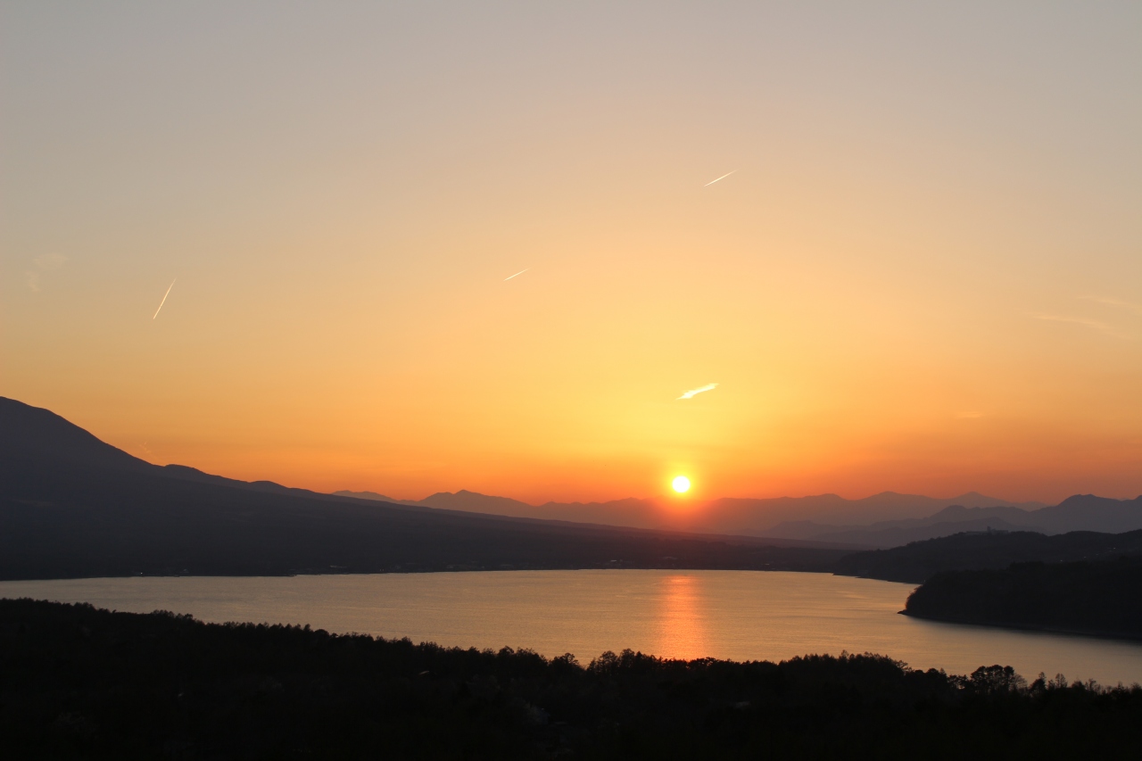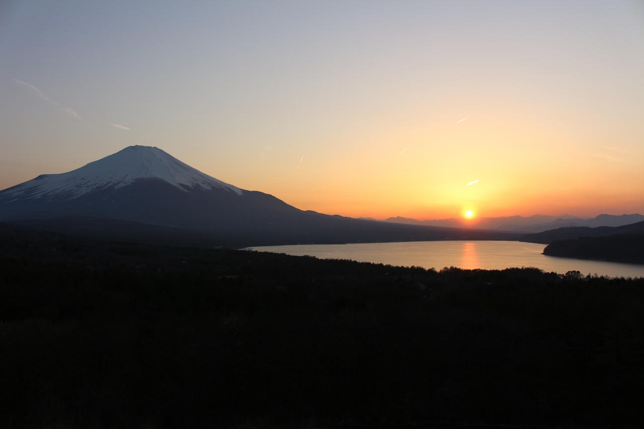 山中湖の向こうに沈む夕日と富士山がきれいに見えました。
