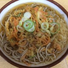 天かすは取り放題です。ツユに崩れたかき揚げは口当たりが優しく、ほっとする味でした。立ち食いそばとしては充分かと思います。