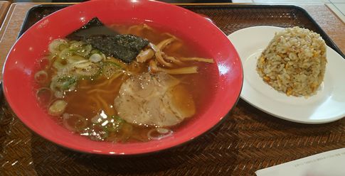 関越自動車道三芳パーキング(上り線)、フードコート内にあるラーメン屋さんです。自動販売機で食券を購入し、呼び鈴を受け取るよくある方式です。休日でしたが席は普通に確保できました。味噌ラーメンや醤油ラーメンの単品に加え、ミニのチャーシュー丼やチャーハンが付いたセットメニューがありました。