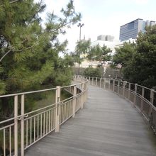 ウッドデッキの遊歩道