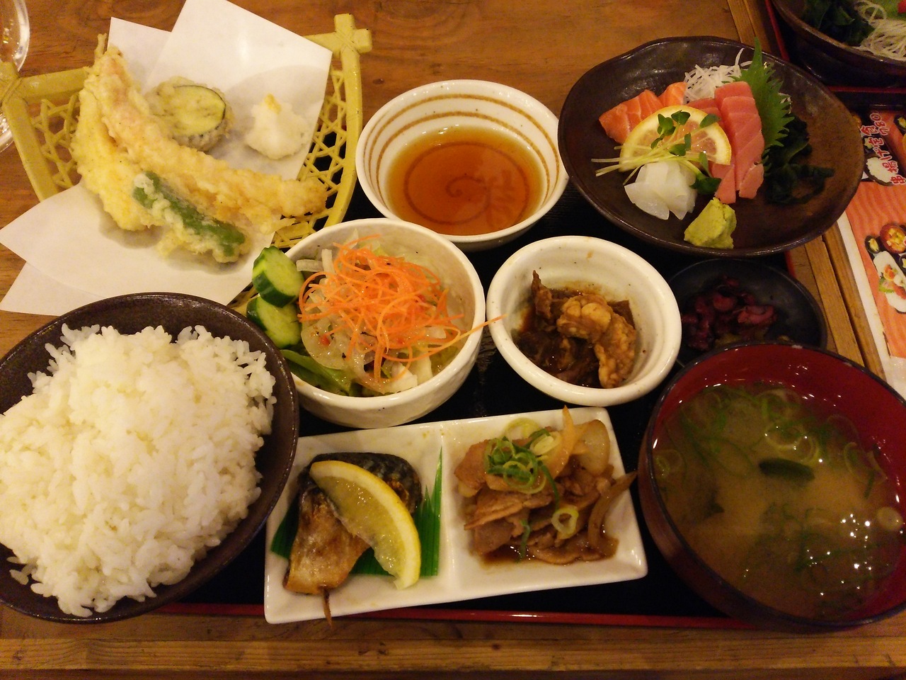 JR小岩駅から徒歩数分にある居酒屋です。このお店は昼間から営業していました。ランチタイムには鶏の唐揚げ定食やステーキ定食などもありますがオススメは満マル御膳(780円)です。刺身、天ぷら、焼き魚などたくさんの種類のおかずが盛りつけられており、また、ボリュームもあり美味しかったです。