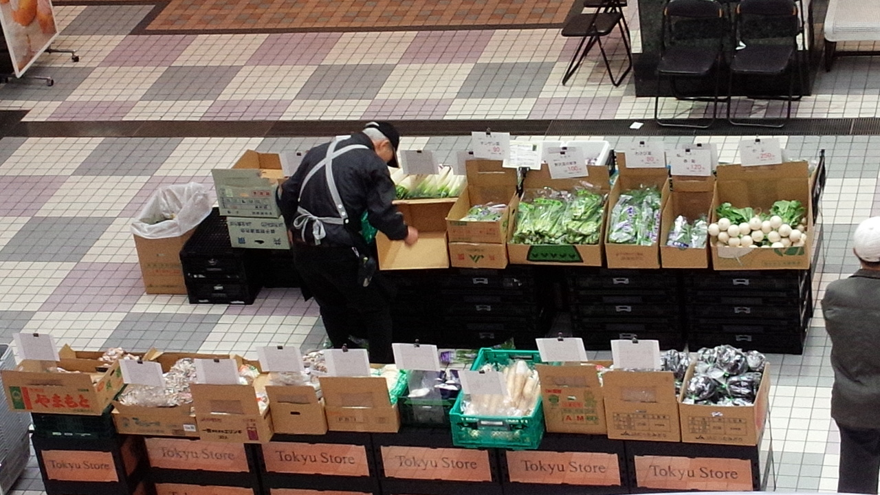 ほ本日は1階に常設の東急ストアの主催で野菜と果物の特売市が行われていました