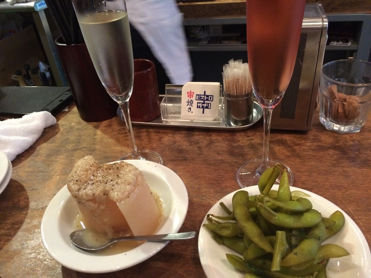 でも、グラス満杯のスパークリングワインは美味しくて安くて~♪(*^_^*)
