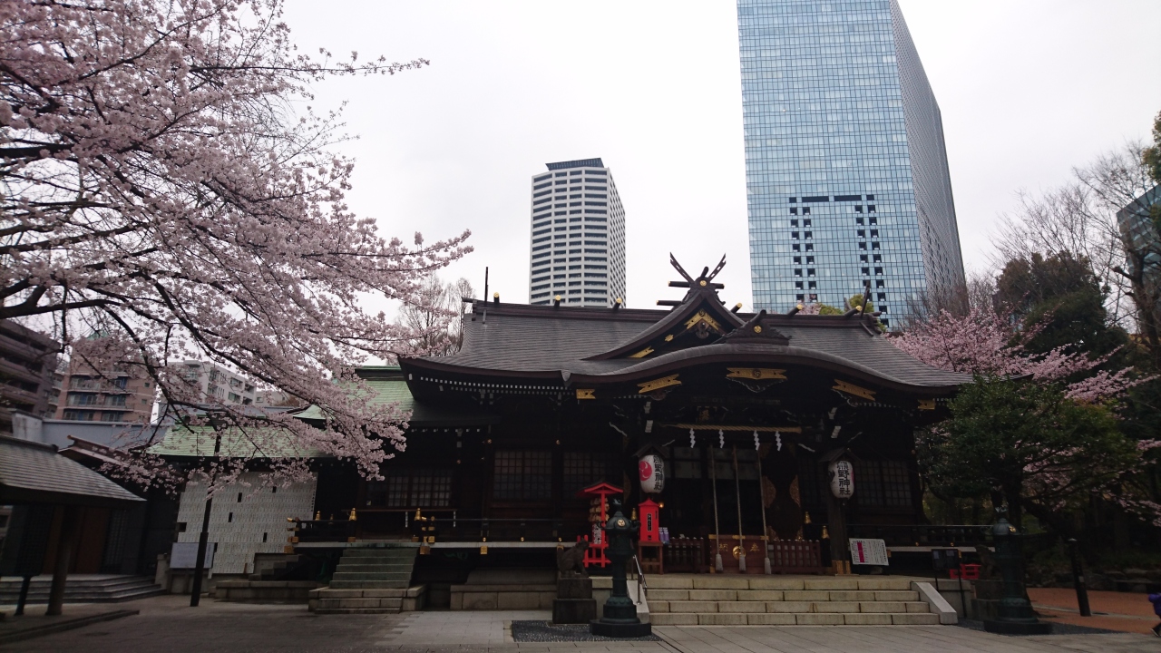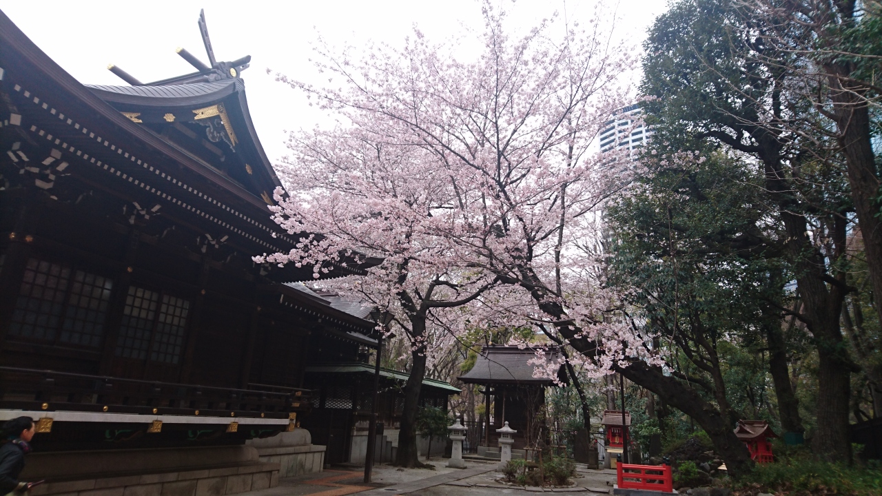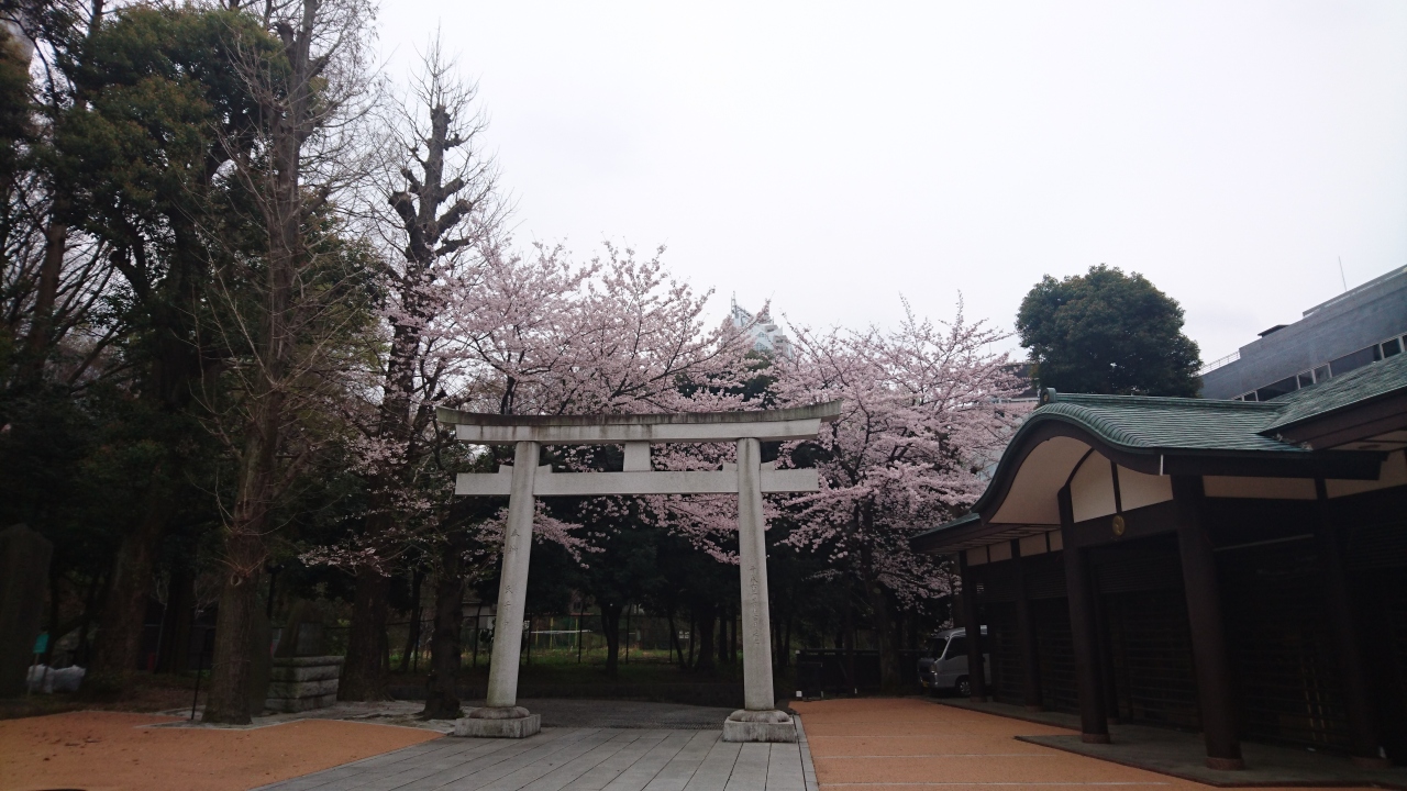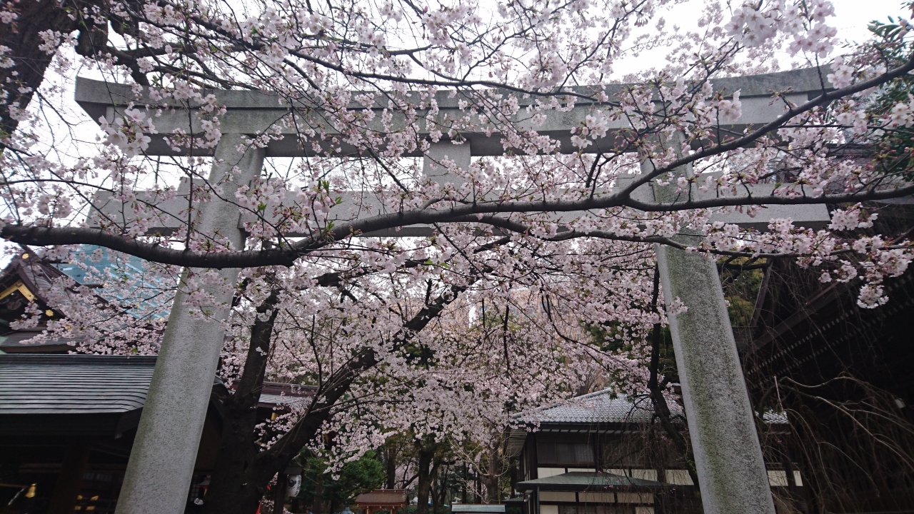 新宿中央公園に桜を見に行った時についでに立ち寄った。園内の西側の坂の途中にある。こじんまりとしている神社だが、時期的に桜が満開だった。道路側の鳥居近くは目の高さに桜の枝があったので接写出来るスポットだった。