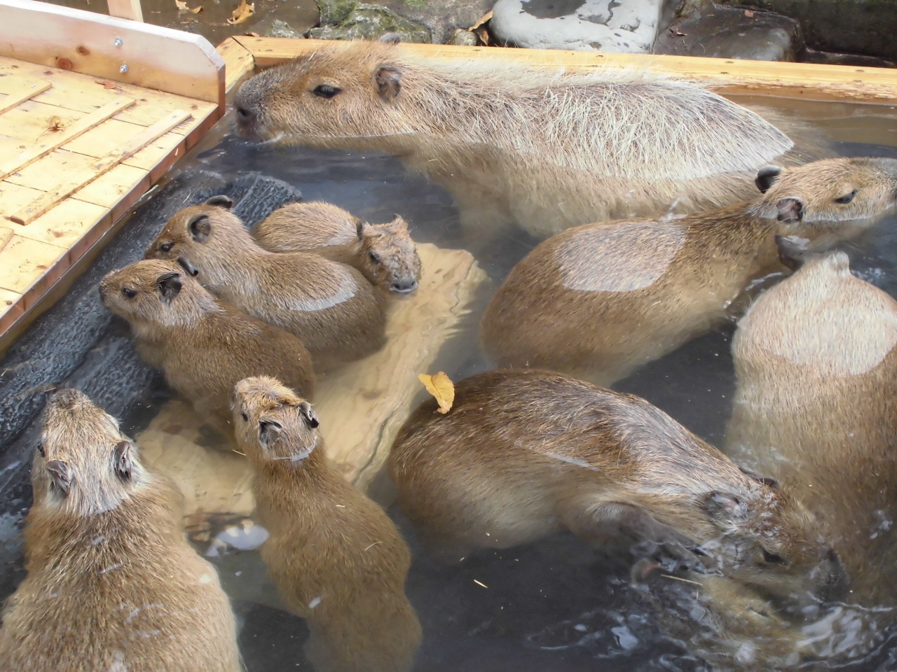 期間限定温泉入浴シーンが見られラッキー。子だくさんのカピバラ親子で赤ちゃんたちかわいかった♪
