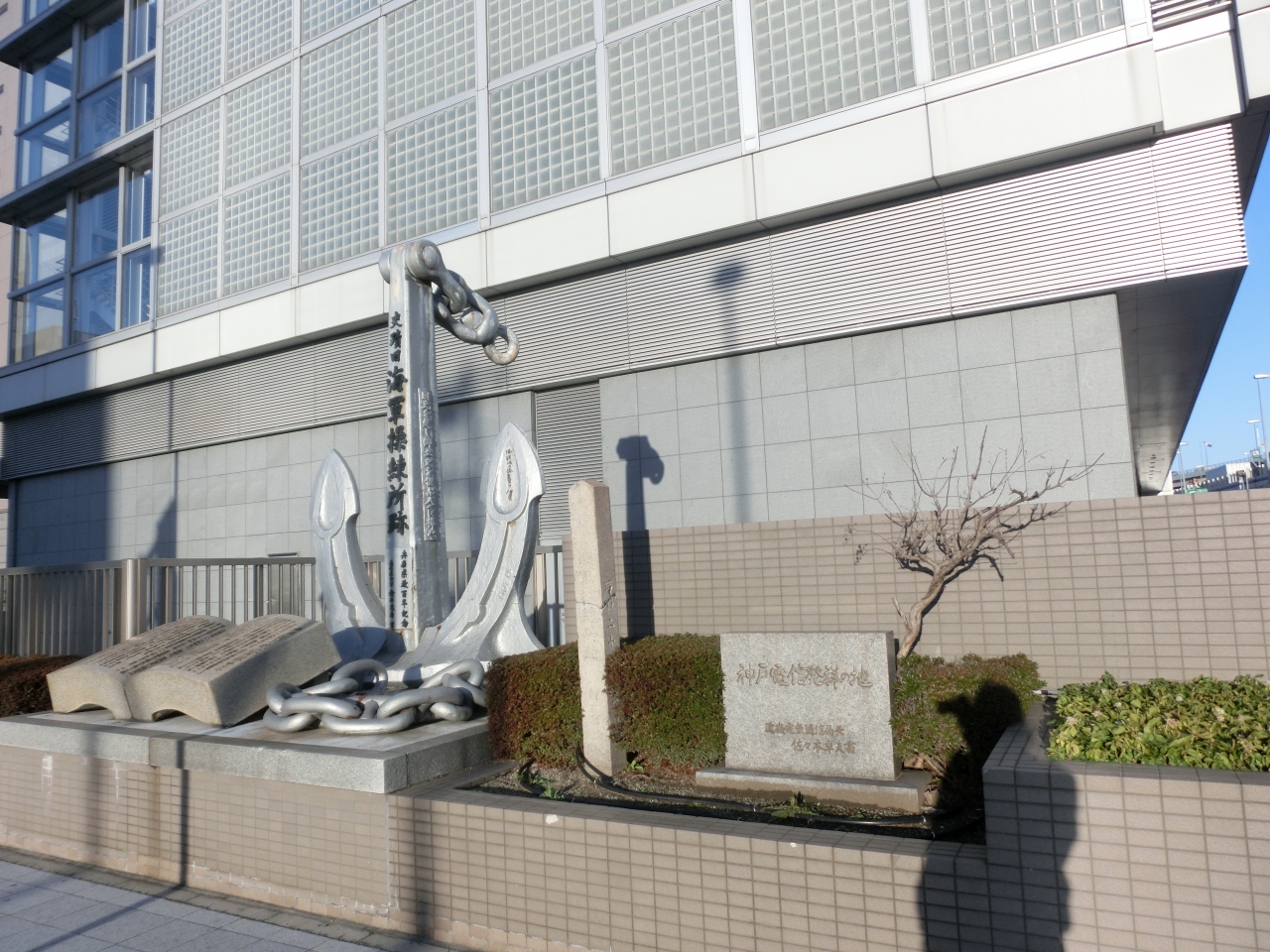 この電信記念の碑が京町筋を下って海岸通りを渡ったところにあるNTTビル前に立っている。