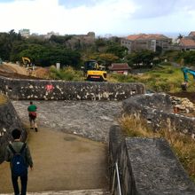土曜日の10時過ぎに行ったところ、駐車場が満車でした。首里城前の道路で信号待ちをしていると、おばさんが助手席側の窓をどんどん叩いて、プラカードを見せてきましたが、どうやら駐車場近くの民家は自分の家の駐車場を時間無制限で500円で貸しているようでした。ちょうど首里城の裏の小道のパーキングエリアがあいていたので、そこにとめて、城壁に沿って歩きました。公園の入園料は820円でした。