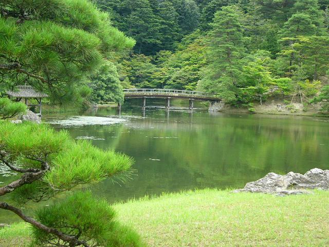 てくる。ここは回遊式庭園となっていて、どこに居ても絶えず水の音が聞こえ、池の向こ