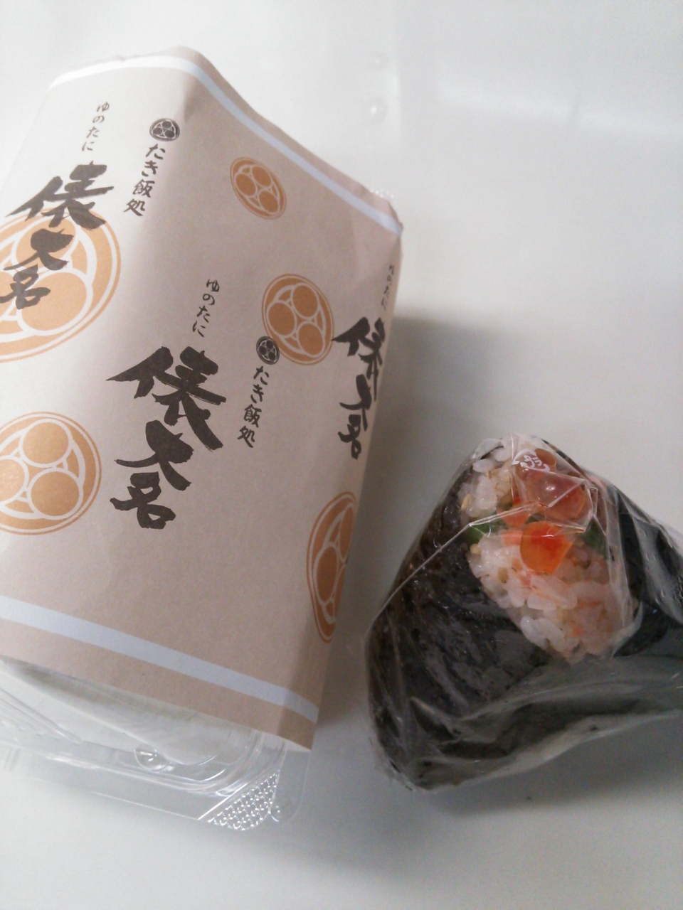 今回は大好きなイクラのおにぎりを、胡麻と大葉が入っておりお米もふっくらしていて美味しかったです。