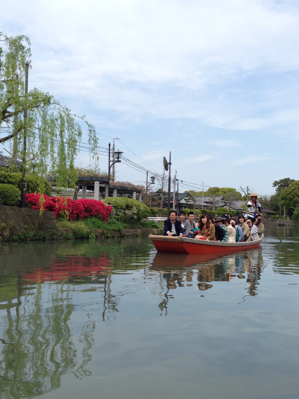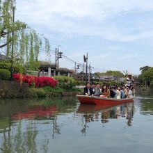 駅からバスで乗船地まで行って、船にのりました。人数が集まるまでだいぶ待たされました。船頭さんは80代の方でしたが、とても元気で力強かったです。私が乗ったのは、川下りではなく、川上りだったので、とても疲れるとおっしゃっていましたが。。。のんびり、風を受けて気持ちよかったです。下船したところから、バスで駅まで送ってもらいました。