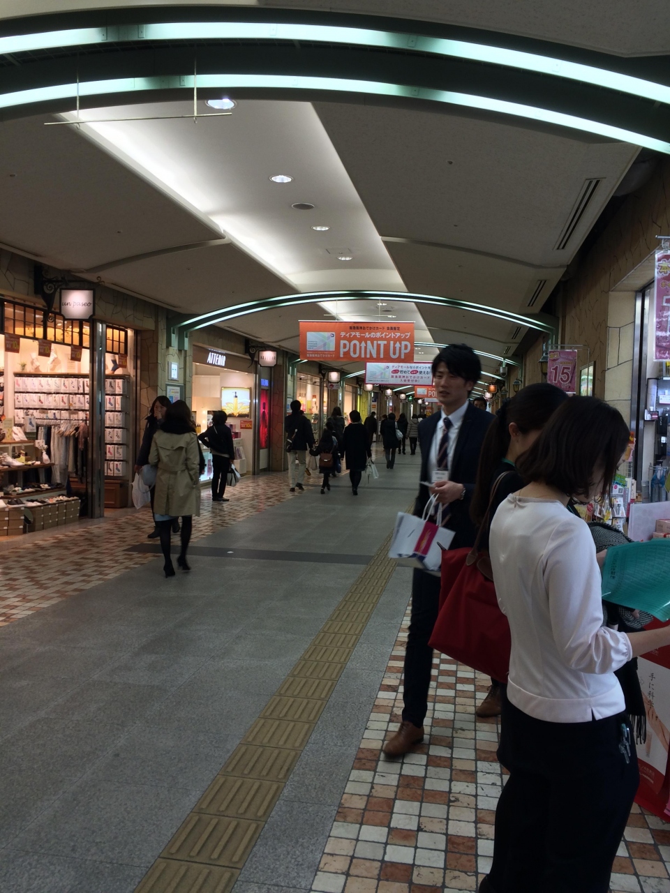 大阪梅田の地下街です。JR・地下鉄・阪急・阪神の駅があり、またJRの駅ビルや阪神百貨店も入っているので賑わっていました。私はJR大阪駅から地下鉄の東梅田まで移動する際に通りました。明るくオシャレな店が多いので、ウインドーショッピングしながら移動しました。
