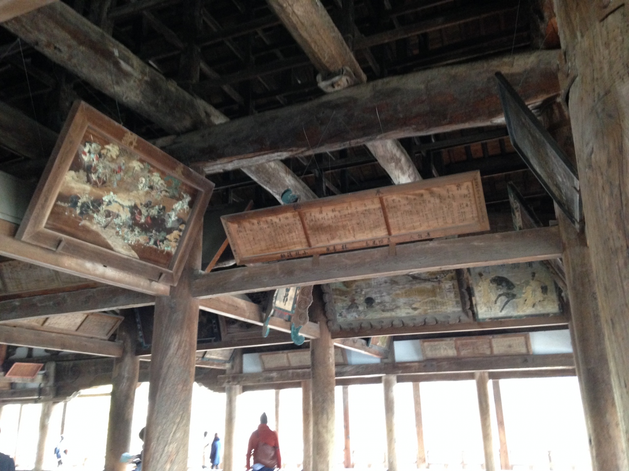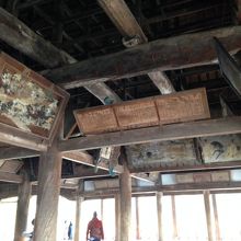 広いです。秀吉が造営して途中で死んだため中止になったとのことですが、その後、取り付けた三国史的な絵や干支の飾りなど見るものもあります。厳島神社が見渡せて桜開花には少し早い時期でしたが春らしい景色を楽しめました。