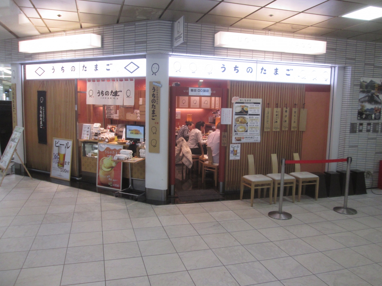 羽田空港国内線ターミナル1の地下に赤坂うまやうちのたまご直売所がありました。京急の改札を出てエスカレーターを上ったところです。たまごかけごはんとたまご丼のお店です。全ての料理に「うちのたまご」を使用しています。