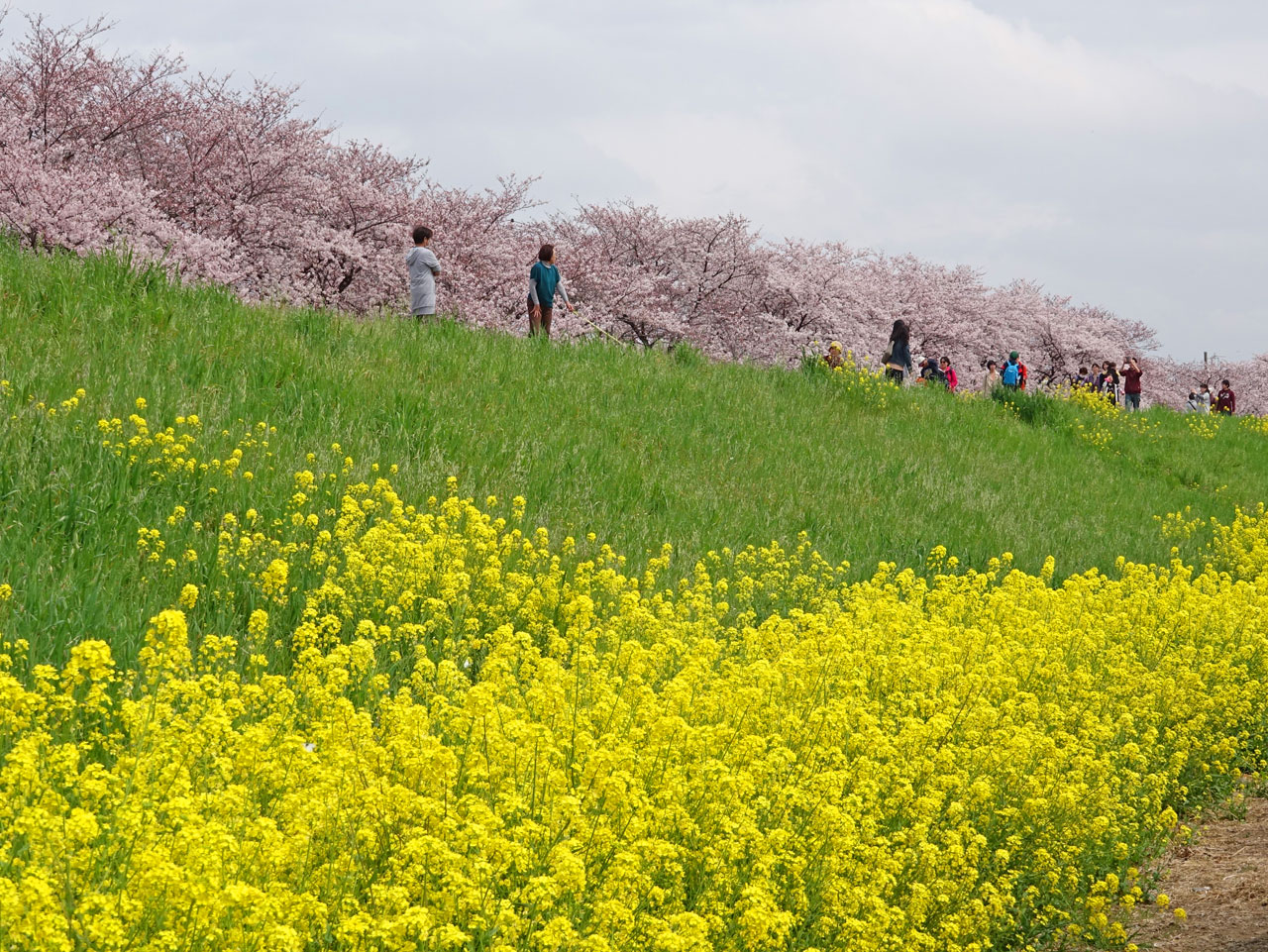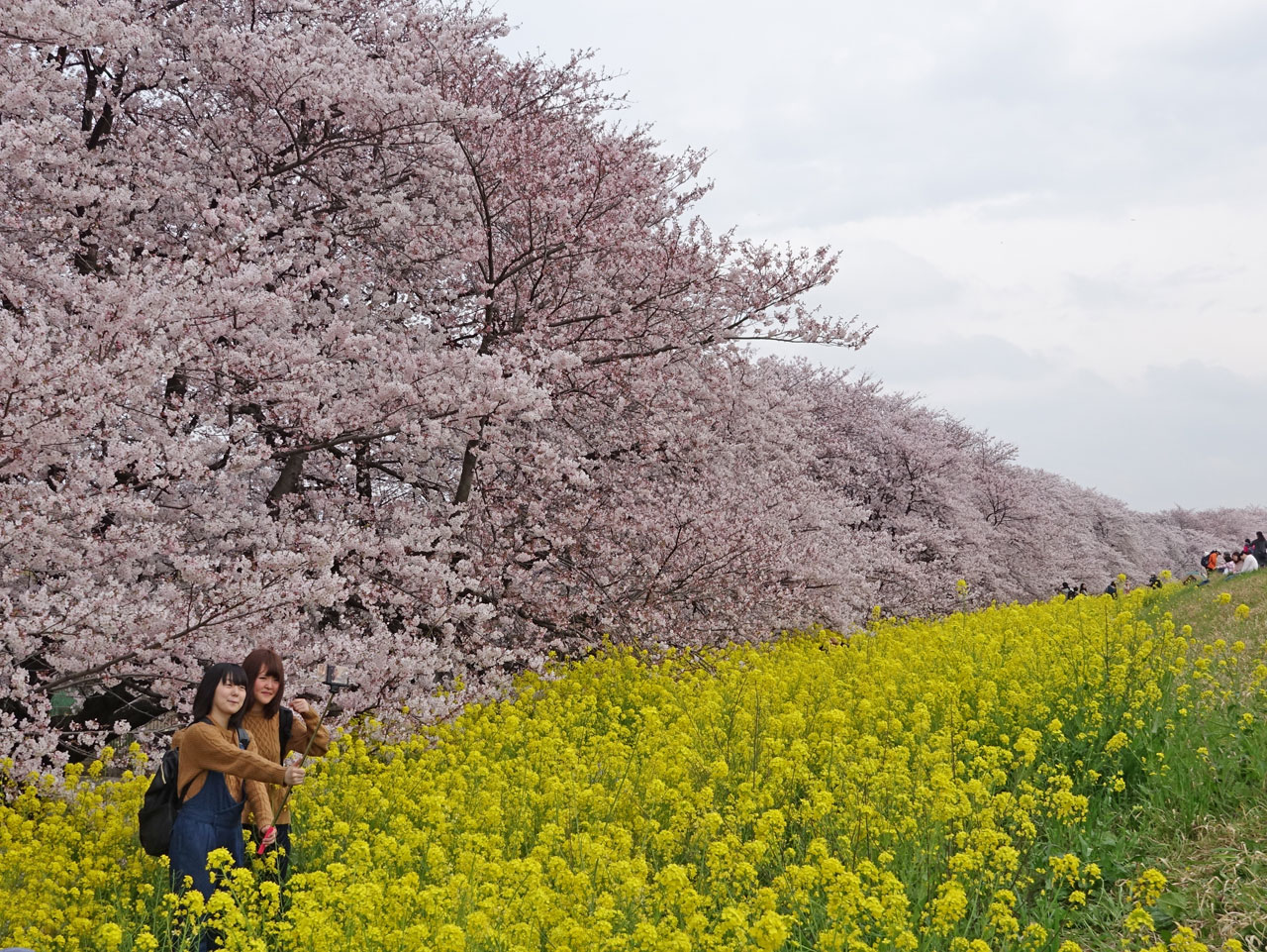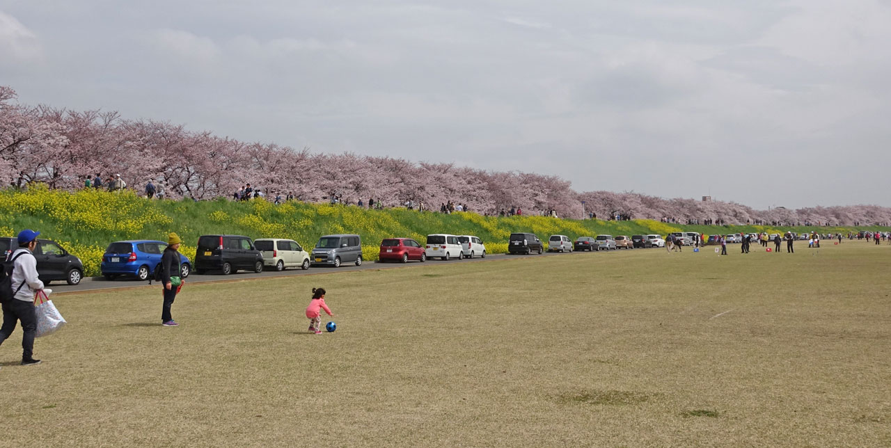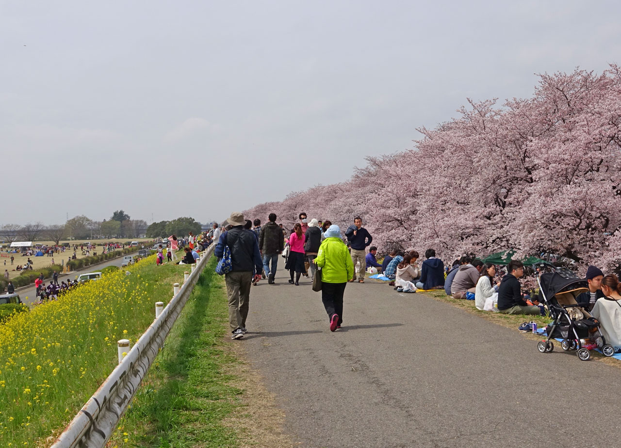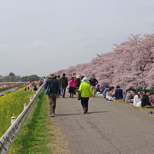 桜の木々が堤(つつみ)に沿ってずらりと並んでおり壮観です。