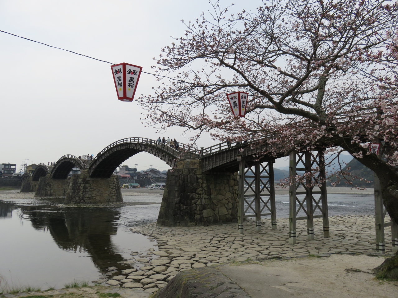 今回は桜が2分咲き程度だったが、それでも、やはり錦帯橋はすばらしい!で、今回、初めて試みたことは、ロープウェーで岩国城まで往復したことだ。セット券で1000円以下だった。ロープウェーで途中の景色を眺められたのはよかった。錦帯橋を見下ろしたのは初めてだったから。。