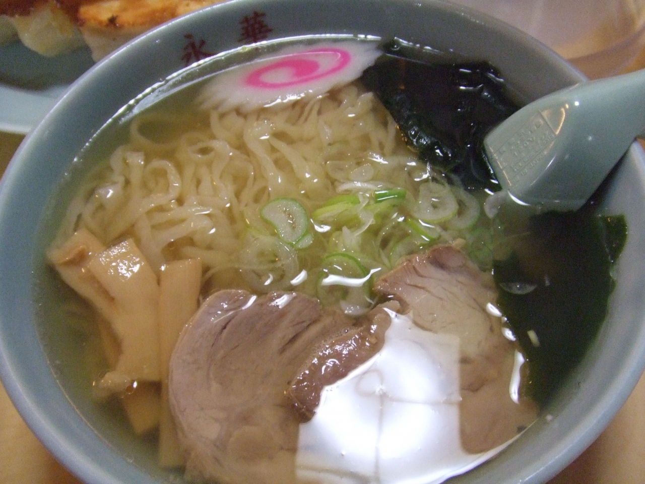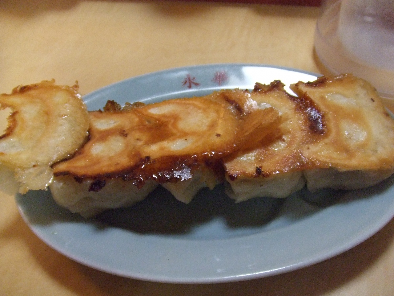 佐野らーめんが¥570。あっさりしていて優しい味。餃子はサイズが大小あって、この店では普通サイズの餃子がものすごく大きい。5個入りを注文したらそのボリュームにびっくり!私は2つ食べたけど、2個で他店の餃子1皿分位ありました。