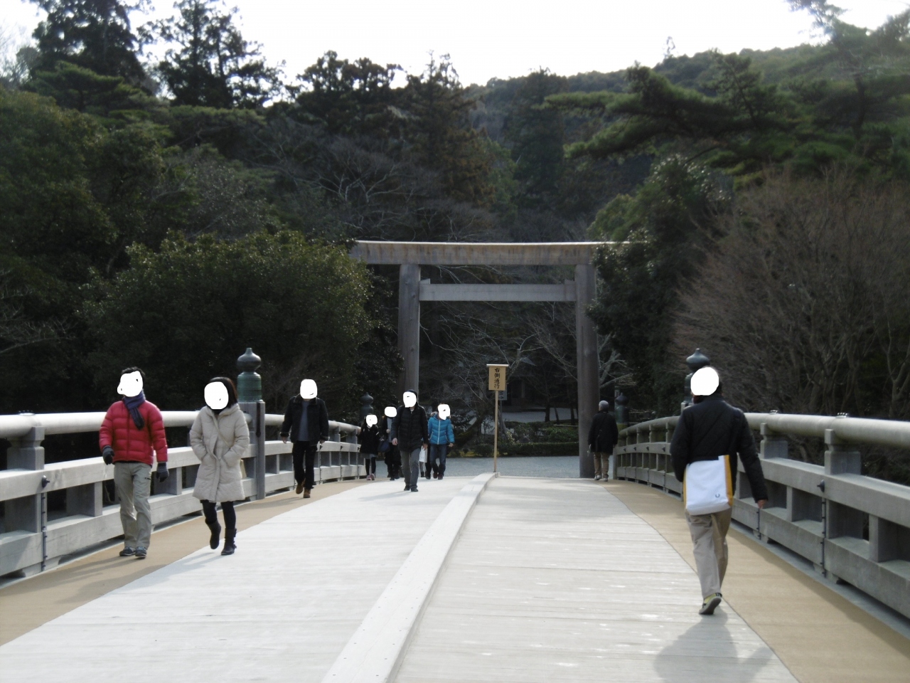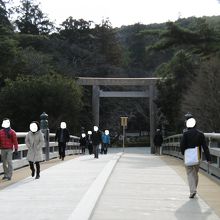「宇治橋」を渡って「内宮 正宮」に行く。五十鈴川にかかっており川の流れは非常に穏やかであった。しばし景色を鑑賞する。ここの橋は渡るとき右を歩行するのが決まりとなっている。無論破ったからといって罰則はないが皆従っておりスムーズにいける。