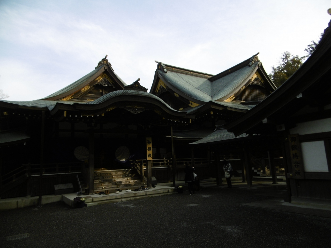 「内宮 神楽殿」は立派な入母屋造の建物だ。ここで祈祷できる。何度か来ているがご祈祷待ちの客がめっきり少ないように感じた。横にあるお神札授与所でお神札やお守りが売っており、こっちは多くの参拝客で賑わっていた。