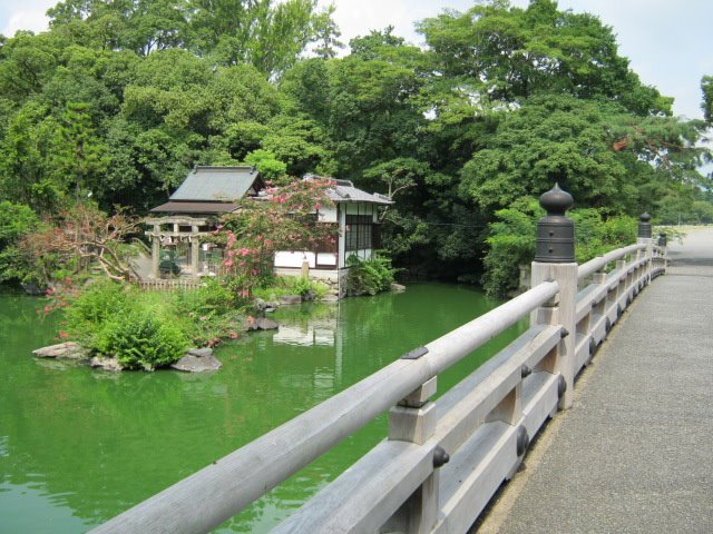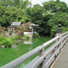 京都御苑のもっとも南側、九条邸跡の池にかかる橋です。