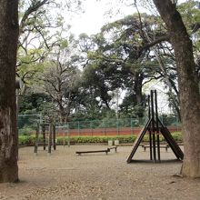 駒込駅から徒歩6分です。国指定特別名勝六義園に隣接している公園です。児童遊具が設置されている公園内には高い木が点在して六義園と融合しています。サッカーや野球ができる多目的運動場があります。六義園から続く趣ある外壁で囲まれています。