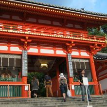 八坂神社内にたくさんあるお社の1つで、疫病除けの神(蘇民将来そみんしょうらい)が祀られています。